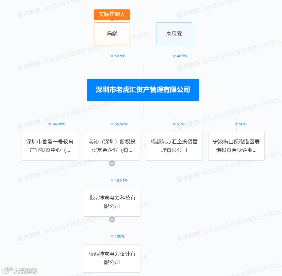 天眼信息显示,深圳老虎汇成立于2015年11月30日,注册资本为3亿元,北京东方君盛成员,是一家以从事金融业为主的企业。目前,该公司股东为冯彪和高忠霖,分别持股59.5%和40.5%。不过,这两名股东均为失信被执行人,且被法院下达限制消费令。