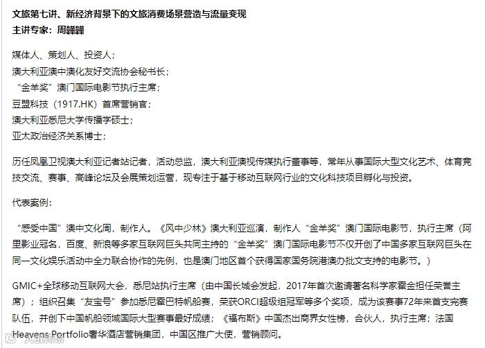 百度百科资料显示,除曾就职于36氪之外,周韡韡还曾为澳大利亚澳中文化友好协会秘书长,“金羊奖”澳门国际电影节执行主席,豆盟(北京)科技股份有限公司执行董事兼CMO。