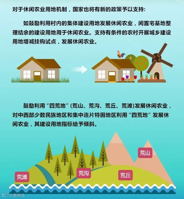 通知指出,将安排一定比例年度土地利用计划,专项支持农村新产业新业态和产业融合发展。对存量建设用地用于小微创业园、休闲农业、乡村旅游、农村电商等农村二三产业的市、县,可给予新增建设用地计划指标奖励。