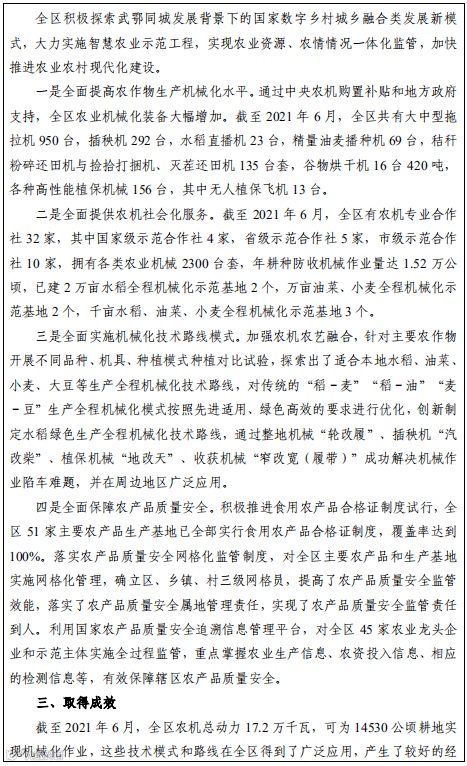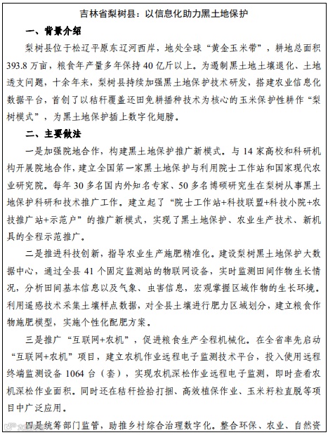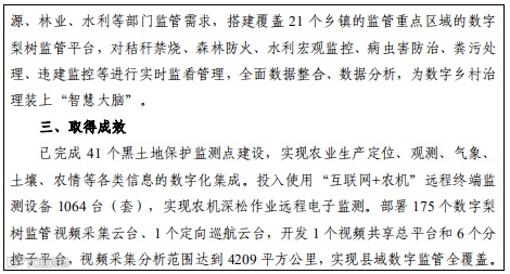 县级层面依托农业农村大数据平台和“三情”一体化监测平台等,为农业生产经营主体开展农田自动化生产管理提供技术指导和数据支撑。