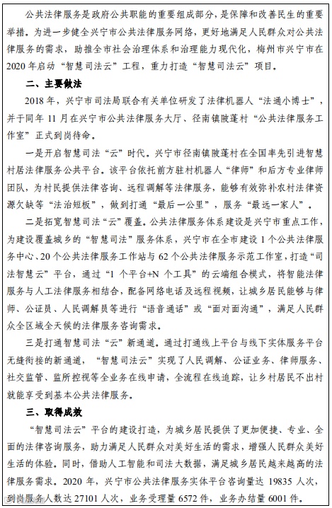 利用大数据、云计算等现代信息技术,构建“数字法治、智慧司法”工作体系,为农民群众提供精准化、精细化的公共法律服务,开展网络普法宣传教育。