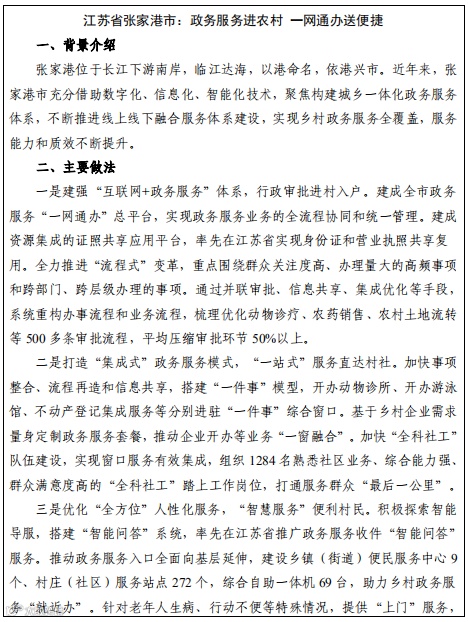 政务信息服务主要包括:涉农政策宣传、推送、查询等政策信息服务;村级党务信息采集、维护等党建信息服务;政策补贴查询和领取、政务服务事项互联网代办等其他政务信息服务。