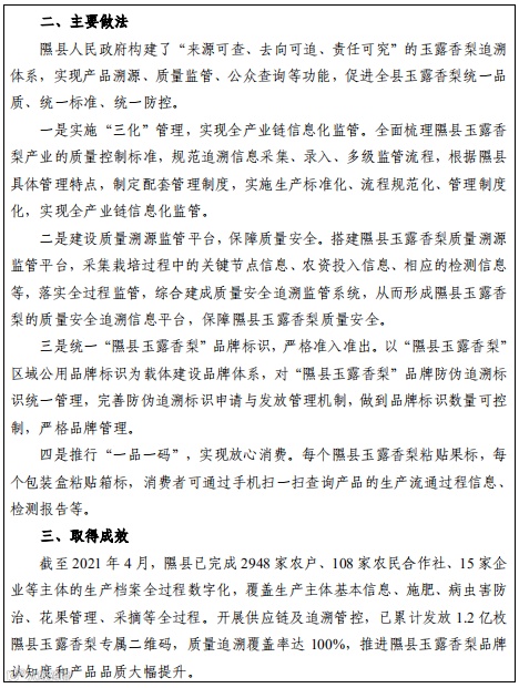 县级层面做好品种测试基地的服务工作,并落实县级所属生态区适宜品种的数据采集和推广反馈。