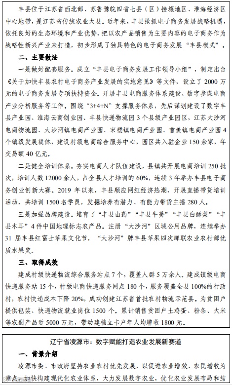《数字乡村发展战略纲要》发布以来,中央网信办、农业农村部、国家发展改革委、工业和信息化部、科技部、市场监管总局、国家乡村振兴局等部门进一步加强统筹协调,先后出台一系列政策文件,各地区认真贯彻落实数字乡村战略部署,积极探索数字乡村发展模式,数字乡村建设开局态势良好,特别是在国家数字乡村试点地区,涌现出一批可复制可推广的应用场景和典型案例。但总体来看,全国各地数字乡村建设还处于持续探索阶段。