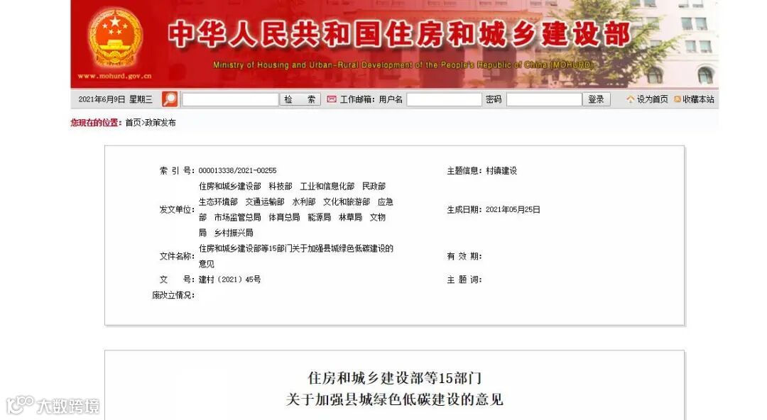 6月8日,住建部等15部门正式印发《关于加强县城绿色低碳建设的意见》,住建部官网曾于今年3月发布该文件的征求意见稿。