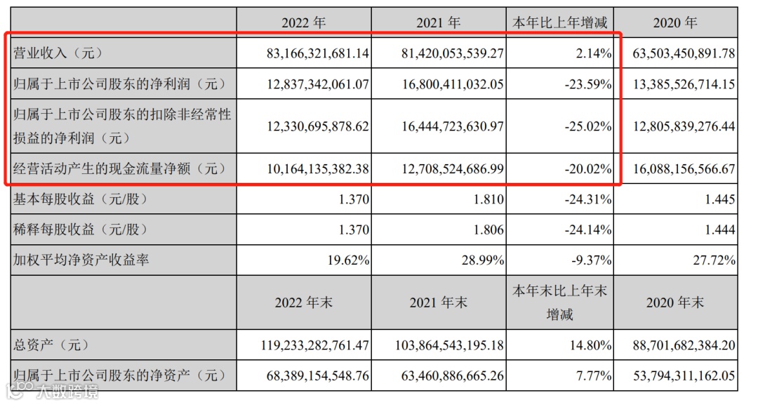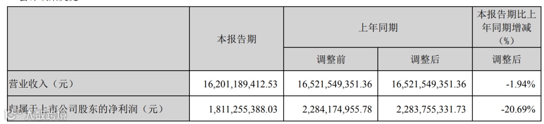 今年一季度,公司实现营收162.01亿元,同比下降1.94%;净利润18.11亿元,同比下滑约两成。