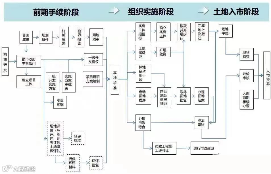土地一级开发工作流程三阶段