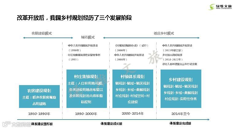 改革开放后,我国乡村规划经历了三个发展阶段:体系建设雏形阶段、体系建设成长阶段、体系建设完成阶段。
