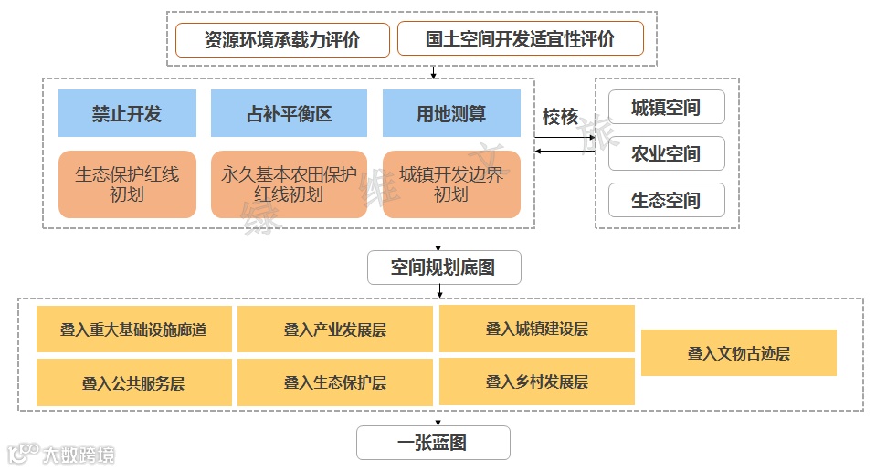 就地城镇化下的多规合一是规划管理全覆盖,布局村庄规划工作是全面全线布局结构到多规合一的村庄规划。在科学开展资源环境承载能力评价和国土开发适宜性评价的基础上,合理划定“三区三线”,叠加各领域规划,以生态为引领,构建“一张蓝图”。