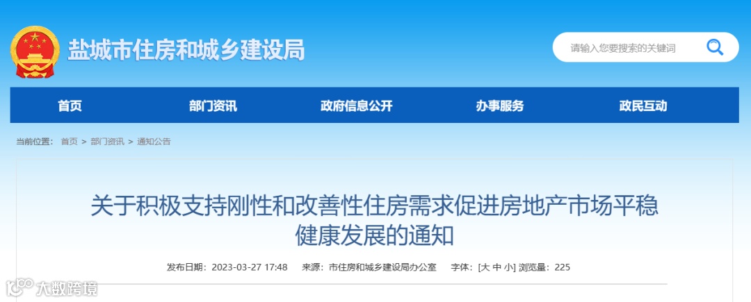 3月27日,江苏盐城住建局发布《关于积极支持刚性和改善性住房需求促进房地产市场平稳健康发展的通知》。