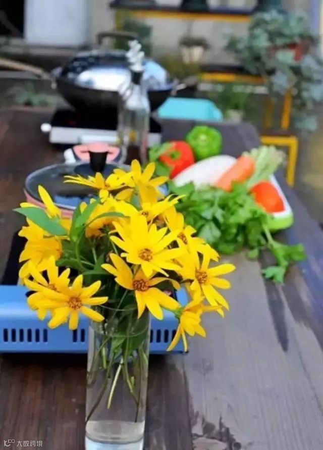 出门人遛狗不必像城市里狗溜人;自己栽什么种什么全凭任性。