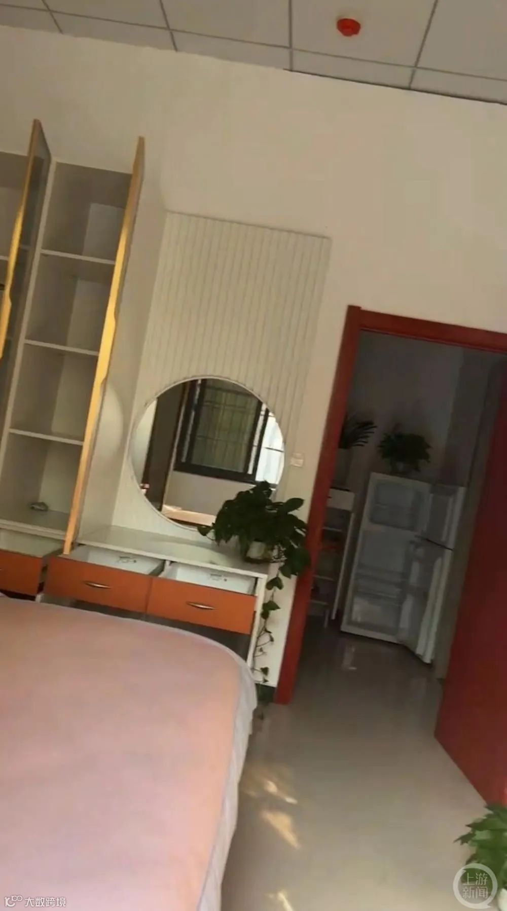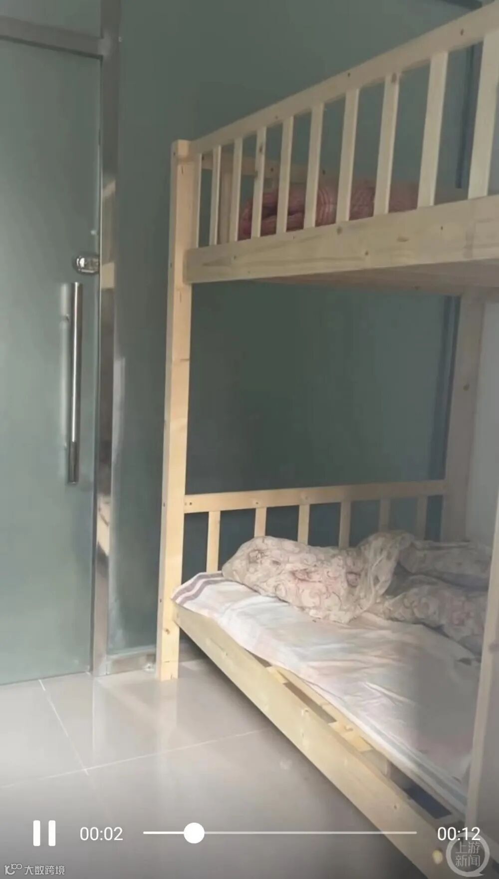 新视点网发布的视频显示,团风县政务服务中心大楼旁有一排平房,平房里有多个房间,其中一间房间内有床、衣柜、电视、桌子等设施,另外的房间内设施简陋、床是上下铺。