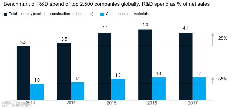 建筑业的研发支出增长速度快于其他经济领域。