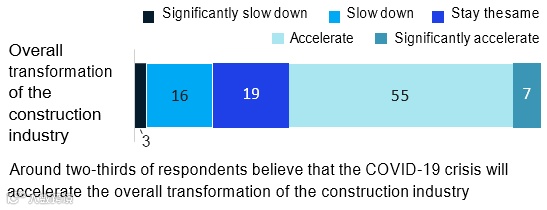 有超过三分之二的受访者认为,新冠病毒危机加快了建筑业转型的速度。