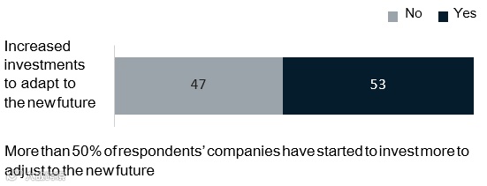 超过50%的受访企业增加了对企业转型的投资,以适应新的未来。