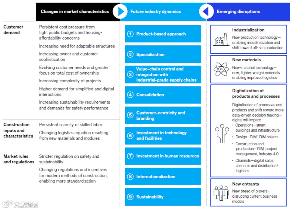 这份报告主要通过分析市场特征的变化及新兴产业的冲击,得出建筑业未来发展的9种趋势。