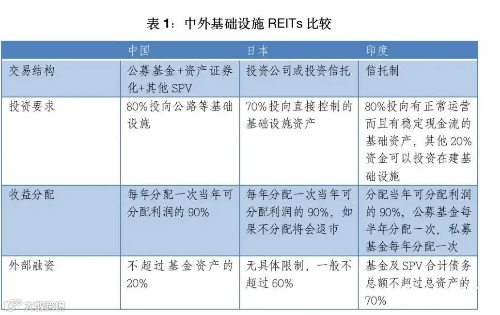 比较分析看,交易结构方面,我国交易结构相比海外较为繁琐,而且可选择性较低,由于我国还没有REITs的法律制度,突破现有监管政策难度较大,从而采用了一种变通方式。可投资资产方面,日本允许投资新能源,而印度允许少部分资金参与在建工程,我国基础设施REITs投资范围则相对狭窄。收益分配方面,分配比例与日本和印度相似,但是印度根据不同基金设置不同的分配频率。外部融资方面,我国基础设施REITs的杠杆更低,也是考虑到我国刚刚发展此类产品,后续可能会放松要求。