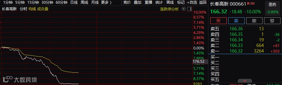 在市场大涨之际,另一只股票也不合时宜地崩了,那就是长春高新。