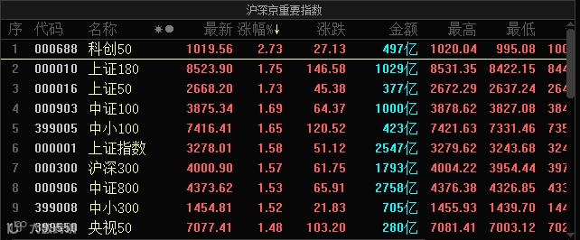 今天早盘,A股飙了!沪指早盘收报3278.01点,涨1.58%,成交额2547亿元。深成指早盘收报11377.83点,涨1.25%,成交额3278亿元。创业板指早盘收报2316.73点,涨0.64%。科创50指数早盘收报1019.56点,涨2.73%。北上资金狂买超120亿元。究竟发生了什么?