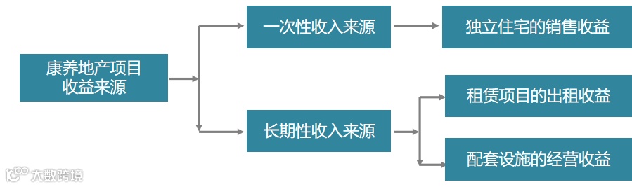康养地产收益主要来源分一次性销售收益和长期性租赁及相应养老服务增值收入。