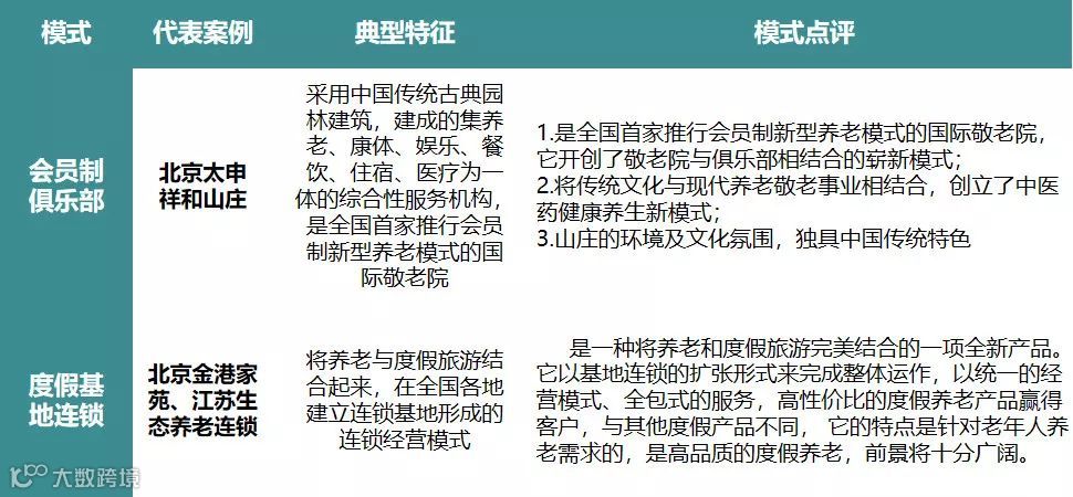 非主流养老方式,健康且具有一定经济实力的老年人通过异地购房,异地旅游和养老相结合,灵活性强。