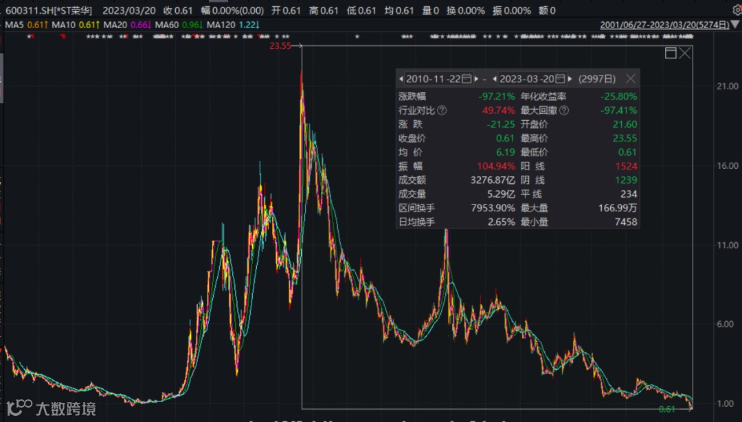 3月20日晚间,*ST荣华发布公告称,上交所将在2023年3月27日对公司股票予以摘牌,公司股票终止上市。