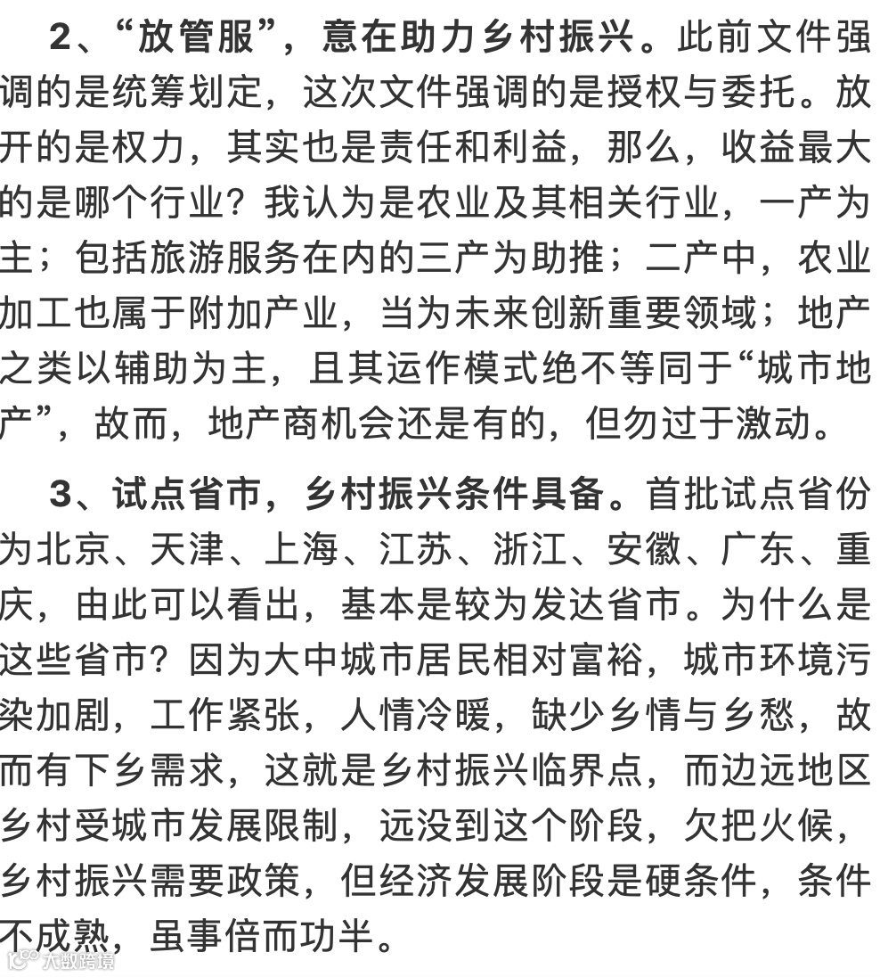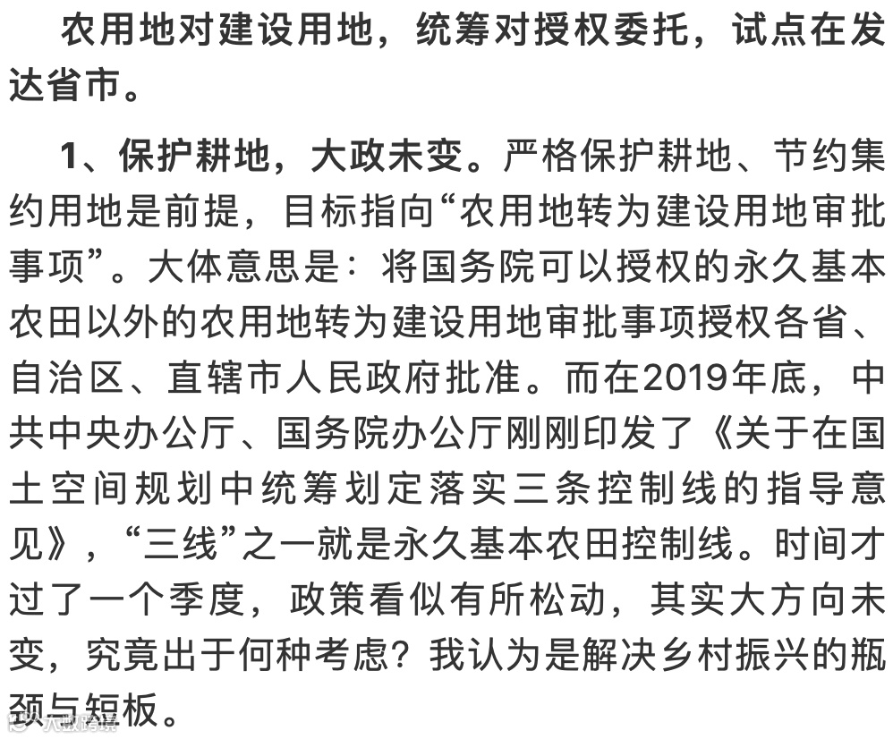 用地审批权限下放,重点在于乡村振兴,间接利好地产。