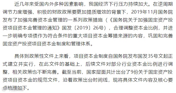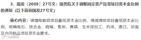 核心内容:对钢铁、电解铝、水泥、房地产开发行业建设项目最低资本金比例进行调增。