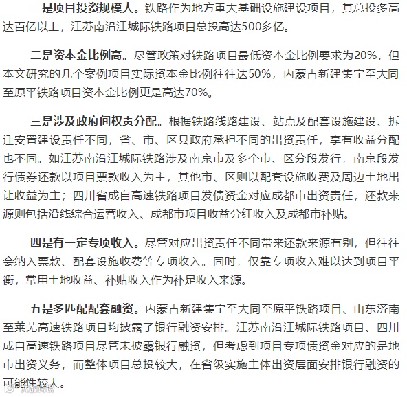 根据以上案例,本文总结出铁路领域专项债用作资本金项目有以下几方面特征。