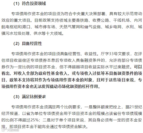 1. 专项债用作资本金前提条件