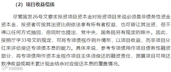 国发26号文提出要区分投资项目与项目投资方。由此可以看出,债务性资金的概念是针对项目主体而言,强调资本金对投资项目来说必须是非债务性资金,项目借贷资金和不符合国家规定的股东借款、“名股实债”等资金,不得作为投资项目资本金;但对于项目投资方来说,实操中也存在项目实施主体(项目投资方)通过发行公司债券、债务融资工具为项目子公司(项目主体)增资的情况。