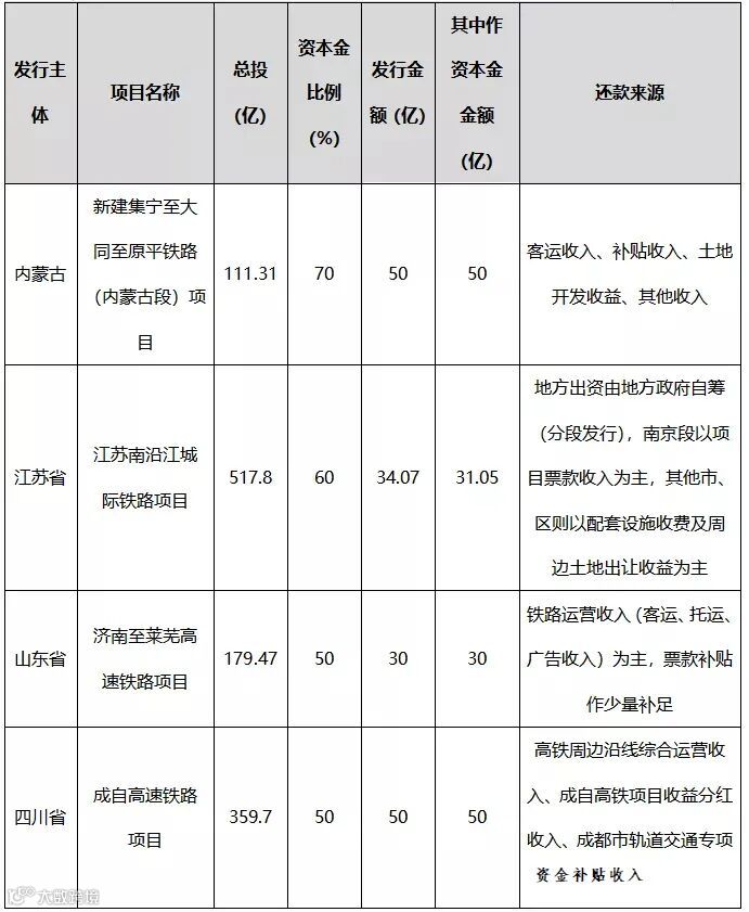 表2 专项债用作铁路项目资本金案例