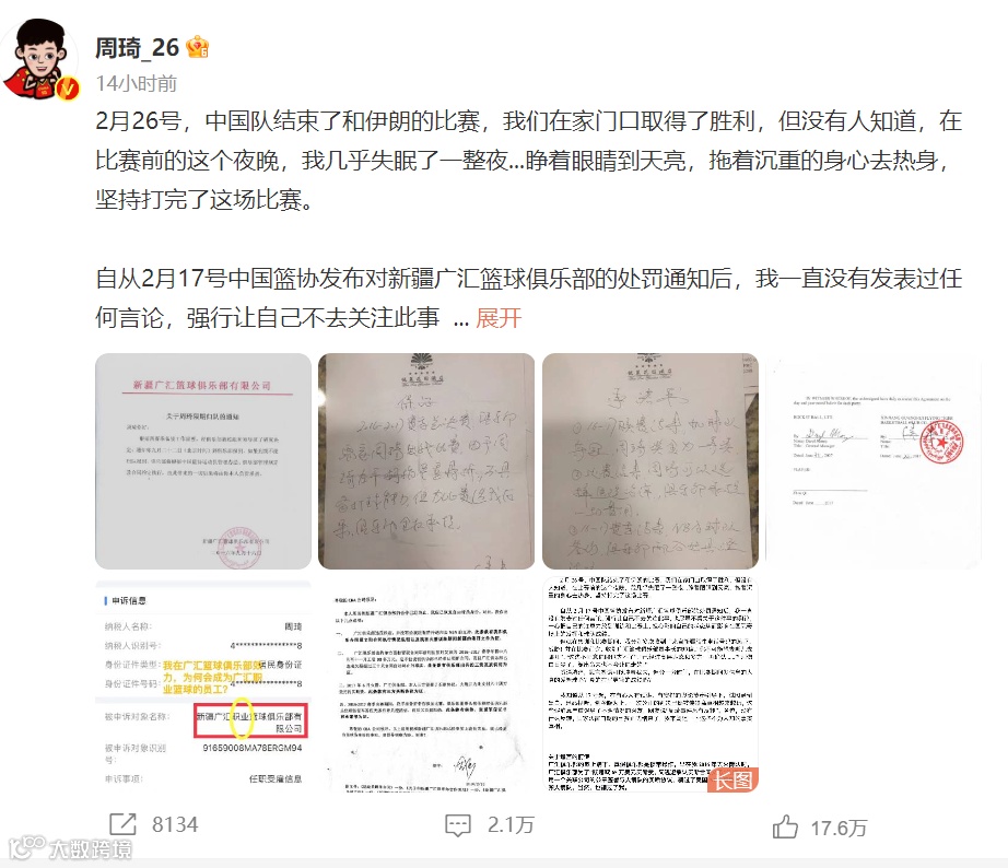 自从2月17号中国篮协发布对新疆广汇篮球俱乐部的处罚通知后,我一直没有发表过任何言论,强行让自己不去关注此事,也尽量不看关于这件事的舆论,一心把自己的注意力放到训练和比赛上,担心影响自己的状态从而影响在国际赛场上的发挥和球队成绩。