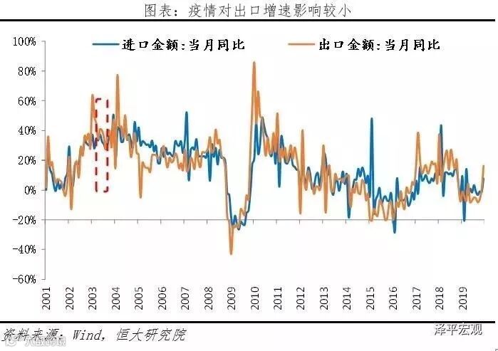 若疫情升级为国际事件,国外将对来自疫区的商品提高准入门槛或直接禁止进入。非典对中国出口贸易影响相对有限,出口同比并未出现明显下滑态势,仅在2003年4月略微下滑。