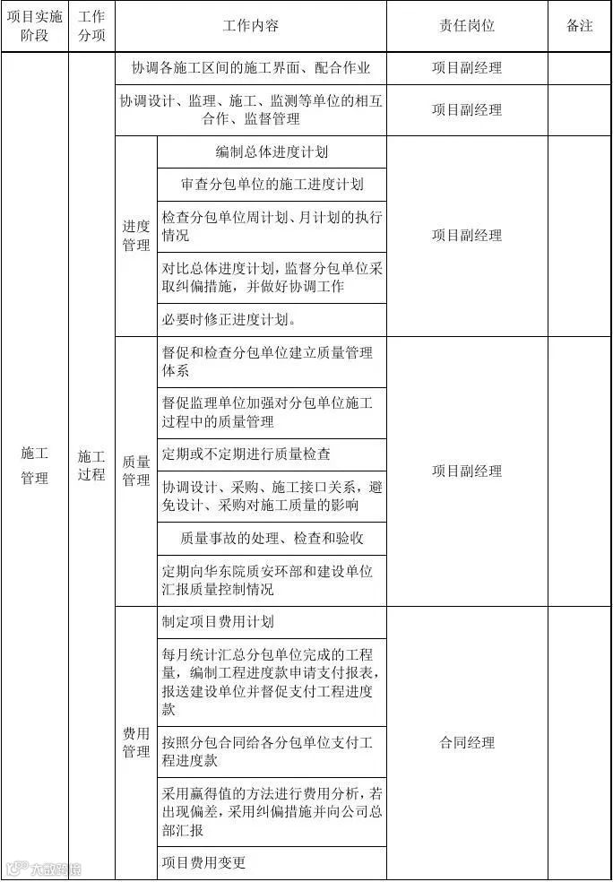 (d)施工阶段要对工程进度、工程成本进行严格的控制,加强过程和环节的控制,确保节点工期和总工期,确保工程投资控制在预算范围内。