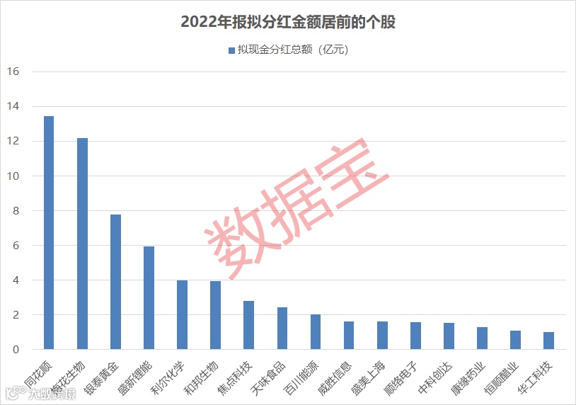 包括梅花生物在内,昨日晚间共有4家上市公司发布分红预案,其他还有盛新锂能、百川能源、汇通能源。今年以来发布分红预案的上市公司共有33家,合计拟分红金额达到71.38亿元,其中同花顺、梅花生物、银泰黄金、盛新锂能拟分红金额都在5亿元以上。
