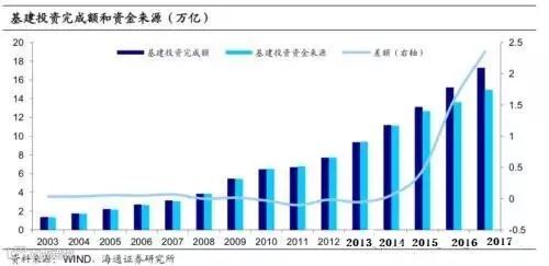一般测算基建投资的方法是通过预测各个途径基建投资的资金来源,加总之后测算基建投资额,但是实际上基建投资资金来源和投资完成额之间一直存在一定的误差,并且近几年误差在持续增大。15年以前“基建投资完成额-基建投资资金来源”这一指标的误差基本在±500亿左右浮动,15年开始则大幅上升,17年已经达到2.36万亿。