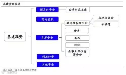 基建投资资金来源主要可以分为预算内资金、国内贷款、自筹资金、外资和其他资金这五项。