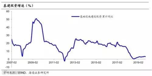 经历过去几轮的基建投资周期之后,目前我国国内的基础设施日趋完善,基建发力短期缺少有力的抓手。部分中央政府主导的项目,虽然有相对充足的资金支持,但建设进度已接近完成目标,或下游需求出现放缓,短期没有大幅增加投资的需要。部分地方政府主导的项目,虽然有一定的发力空间,但受制于地方隐性债务核查压力,配套资金受限。因此19年以来基建投资在行业层面始终缺乏明显的亮点。