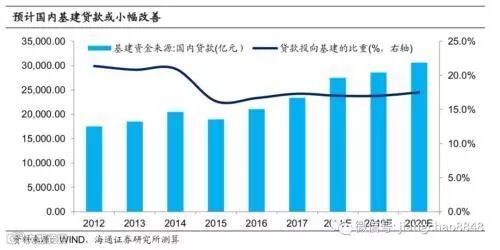 我们假设2020年投向基建的国内贷款占当年新增信贷的比重或提升至17.5%、较19年小幅增加,则2020年基建贷款为3.06万亿元左右,同比增长7%(19年为4%),融资额较19年小幅增加2000亿元。