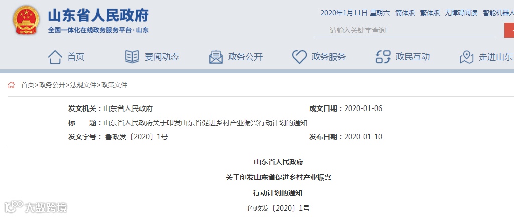 近日,山东省政府印发《山东省促进乡村产业振兴行动计划》(鲁政发〔2020〕1号);推动实施乡村产业振兴“六大行动”,确保到2025年,我省乡村产业振兴取得重大突破;到2030年,乡村产业体系更加完善,全省半数以上乡村基本实现农业现代化。