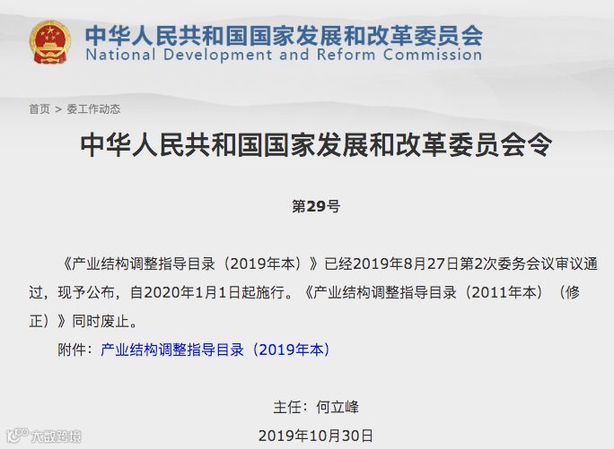 上证报中国证券网讯 据国家发展改革委11月6日消息,10月30日,国家发展改革委修订发布了《产业结构调整指导目录(2019年本)》(以下简称《目录(2019年本)》)。就社会各界关注的问题,记者采访了国家发展改革委产业发展司负责人。