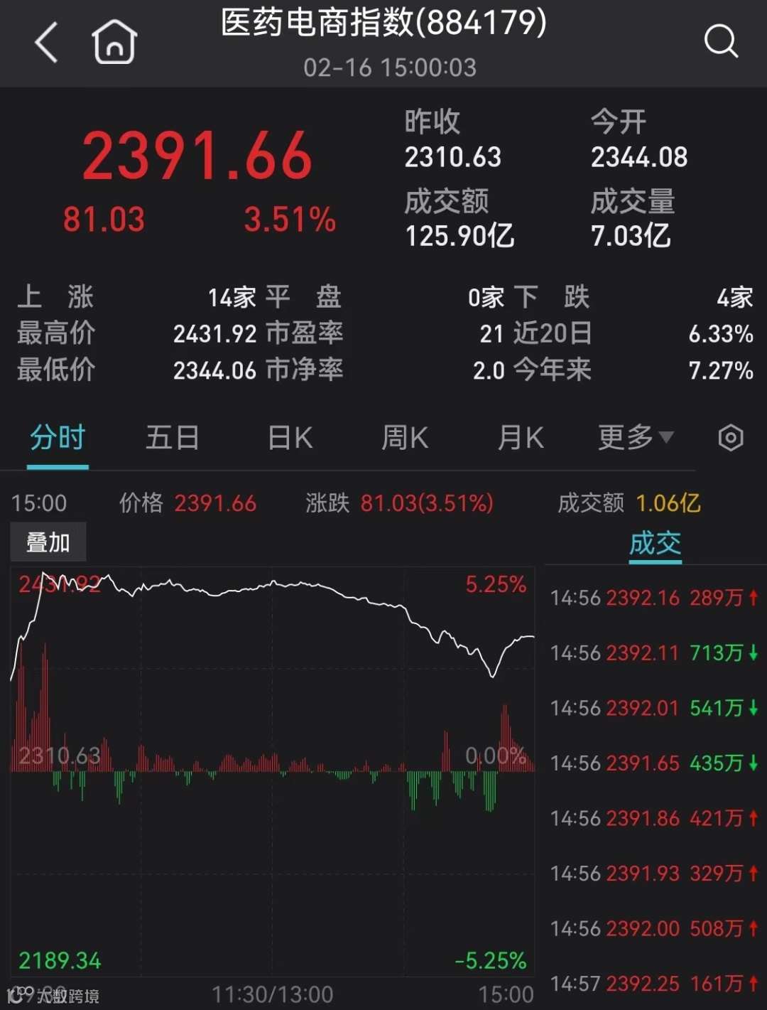 从阶段走势来看,医药板块16日上涨可谓“有备而来”。比如,医药商业精选指数此前5个交易日已实现了5连阳,2月9日以来累计涨幅超过6%;医药电商指数同期累计涨幅同样超过6%。
