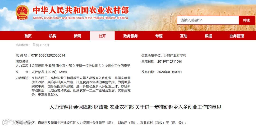 人社部、财政部及农业农村部1月9日联合发布“关于进一步推动返乡入乡创业工作的意见”,重点内容为支持农民工、高校毕业生和退役军人等人员返乡入乡创业,是落实就业优先政策、实施乡村振兴战略、打赢脱贫攻坚战的重要举措。为贯彻落实党中央、国务院的决策部署,进一步推动返乡入乡创业工作,以创新带动创业,以创业带动就业,促进农村一二三产业融合发展,实现更充分、更高质量就业。以下为政策全文: