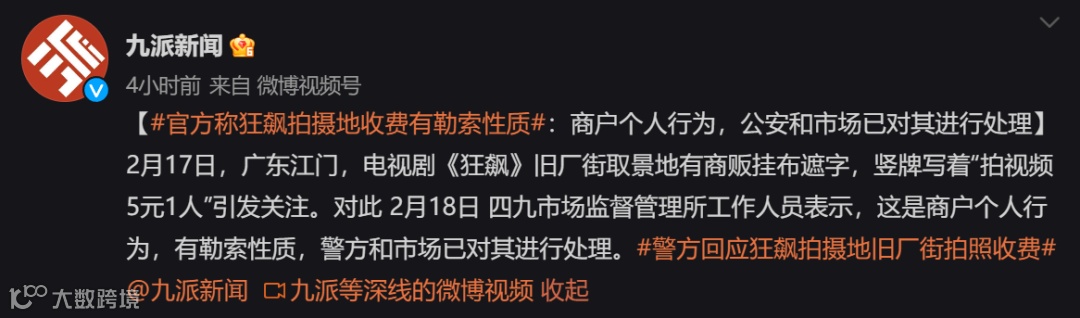 同日,四九市场辖区市场监管所工作人员回应称,经向四九市场核实,确认上述收费行为是一旁档口摊主的私人行为,目前市场方以及城管部门已经对其收费行为进行制止。该工作人员称,“旧厂街市场”的门头后续不会也不可能向游客收费,欢迎各地游客来江门旅游。