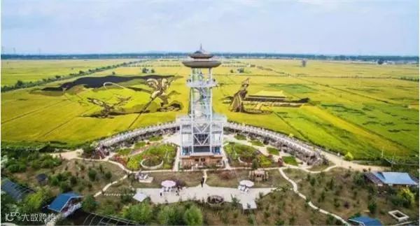 在位于富锦长安镇永胜村的万亩高标准水稻示范基地,观光亭的主体架构已建完。这片“大地块”有4万亩,核心区有1850亩,景观区有819亩。在规划中,景区中心将建一座观光塔,12座观光亭,20个观光平台,其中玻璃平台将延展到稻田里,让游人有站在稻田里的感觉。在观光塔四周,利用6种不同颜色的水稻苗种出“中国梦”“美丽乡村”“祖国大粮仓”“海稻船”等4幅巨型彩色稻田画。此外,还将打造稻田水世界、稻草人王国、黑土泥塘、植物迷宫、热气球等景观。