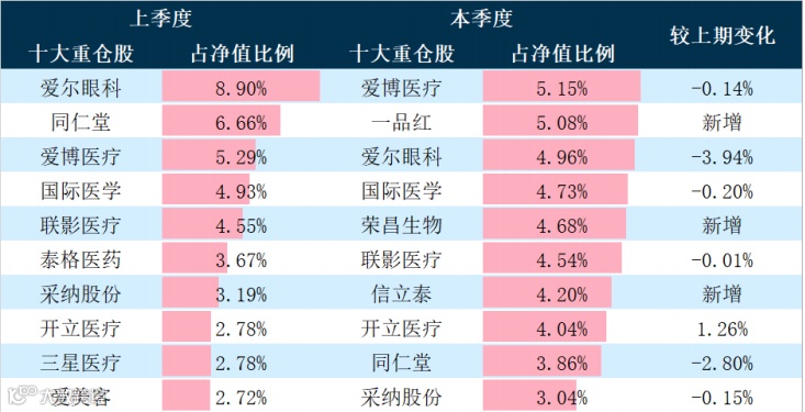 四季度易方达大健康主题灵活配置混合前十大重仓股中新增3只股票,一品红首次出现在前十大重仓股中,位居榜二;爱尔眼科和同仁堂仓位减持超过2.5%。该基金报告期内涨幅为15.52%。