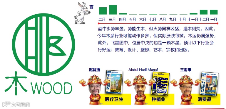 木系行业可能动作多多,但实际涨跌很微。木运仍属强势。预计以下行业会行好运:教育、设计、整修、艺术、宗教和出版。