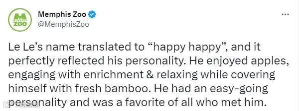 对此,很多网友在社交媒体推特上纷纷表达了对“乐乐”离世的不舍和怀念。