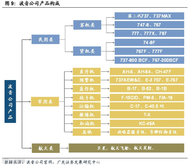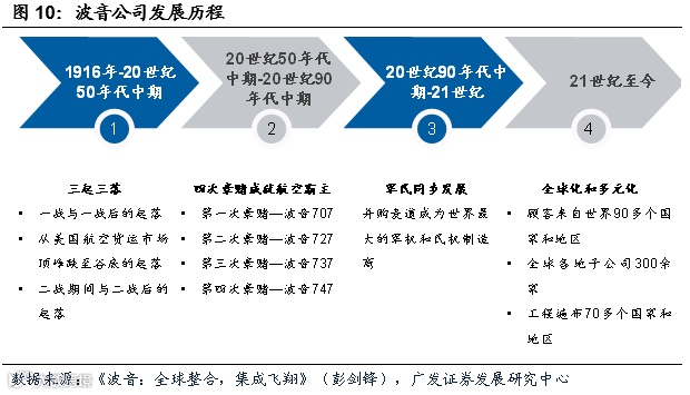 波音是全球最大的民用和军用飞机制造商。波音公司成立于1916年,以军用飞机起家。20世纪60年代,波音开始进入民用飞机领域,逐渐确立全球民用飞机制造霸主的地位。1997年,波音并购麦道公司后,将军用飞机和民用飞机业务进行横向合并。目前,波音公司的主要业务有民用飞机、军用飞机、电子和防御系统、导弹、火箭发动机、卫星、发射装置和先进的信息与通信系统等。